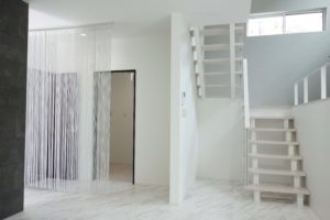 モダンな外観の並ぶ1邸1邸、それぞれがコンセプトハウスとなっており、FIX窓で圧迫感の少ない玄関を通ると、