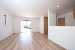 ゆとりのあるLDKは、リビング収納やシステムキッチン専用のカップボードなど収納場所を多めに確保!