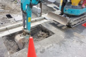 ユンボで作業をしてくださっているのはヤマヒロ工業の山廣さん!