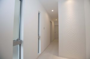 玄関入ったエントランスホールでまず目に入る 壁一面のレリーフは、エコカラットを採用♪