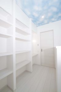 他にも、最上階の天井がなんと空の壁紙♪外がどんな天気であっても、お家の中ではいつも気分上々ですね(。ゝ(ェ)・)/