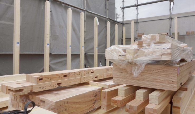 シビアな操作が必要なクレーンのオペレーターさんと大工さんが息を合わせて、慎重に組み上げられてゆきます((((っ。・(ェ)・)っ