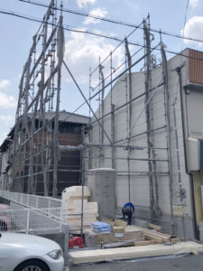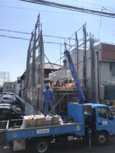 午前中から作業は始まり、2階部分へと建築資材を運び込んでいる最中です(´(エ)`)つ