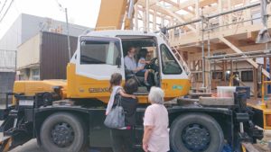 棟上げ中は、施主様も棟上げの様子を観に来られ、お子さんがクレーンに乗せてもらう一幕があったり棟上げ完成後に大工さんと共に記念撮影をパシャリv(* ̄(工) ̄*)v