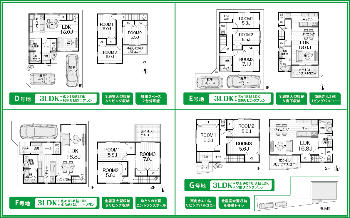 各物件の参考間取りや土地の広さ・価格などは下記リンクより