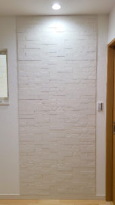 リビングや玄関エントランスのエコカラット、ディテールを強調するようにダウンライトが配されてオシャレv( ̄(工) ̄)v