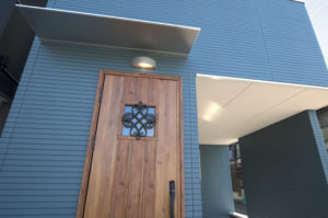 オシャレカジュアルなブルーの外壁を使用したお家\( ̄(エ) ̄*)