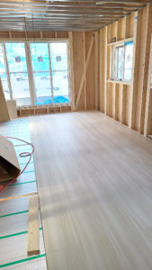 こちらのお客様邸では、ただいまリビングのフローリング張りが行われています♪