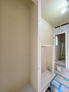 玄関周りの枠なども仕上げ中で、フロアとクローゼットなど図面通りの空間が出来上がりつつあります!