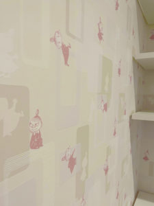 キッチン横にある三角垂れ壁のパントリーの中は、ムーミン谷のミイです(・(ェ)・。)/