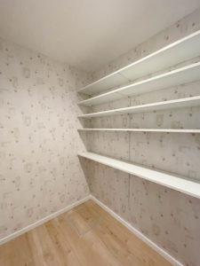 キッチン横にある三角垂れ壁のパントリーの中は、ムーミン谷のミイです(・(ェ)・。)/