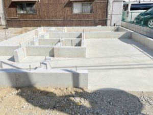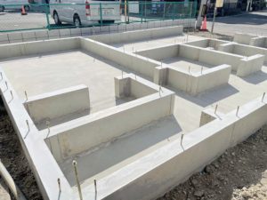 配筋組みや検査・コンクリートの打設などを経たのち、型枠が外れ 無事に基礎が完成いたしました_〆ヾ( ̄(エ) ̄