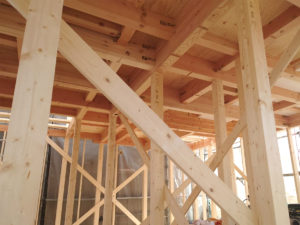 午前中に現地へ伺いましたが、早くも2階部分の骨組みが組み上がり、お家のカタチが見えてきました☆★