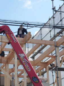 高所も臆することなく作業をする大工さんの様子をパシャリ♪