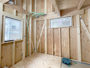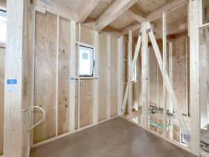 先月上棟しましたこちらのお家では、現在大工工事の真っ只中!