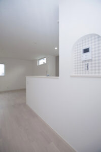 玄関やリビングにはアーチ型のニッチや垂れ壁があり、遊び心もプラス♪