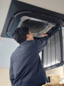 天井埋込型エアコンの清掃や窓サッシ・窓枠まわりの拭き上げなどなど、、