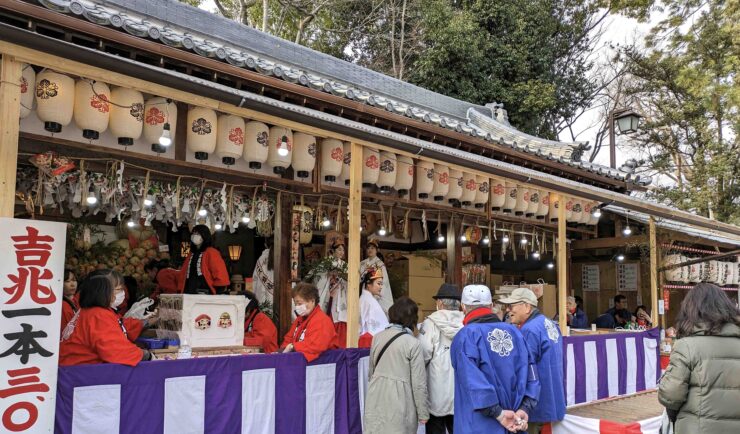 福俵や吉兆といった縁起物をつけた”福笹”を求めて参拝( ‘(ェ)’)人
