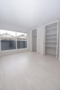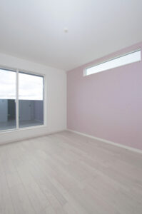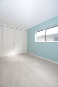 各居室には、それぞれの用途やテイストに合わせて、パステル調の明るいアクセントクロスを配して遊び心をプラス\(・(ェ)・。)