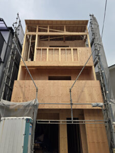 そして、先月上棟しました摂津市のお客様邸は、大工工事が進行中