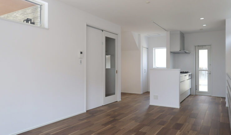 室内も、清潔感のある白を基調としながら、深みのある色のフローリングを取り入れて落ち着いた雰囲気の空間に♪