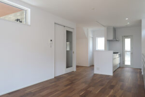 室内も、清潔感のある白を基調としながら、深みのある色のフローリングを取り入れて落ち着いた雰囲気の空間に♪