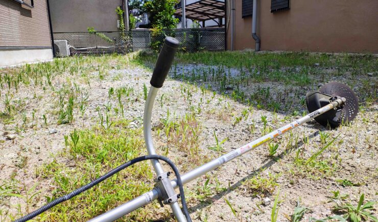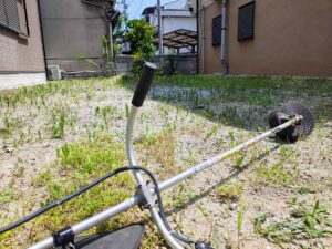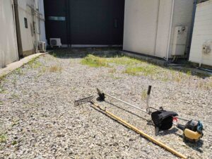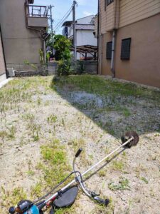 猛暑の中、一通り草刈り機で刈った後に、屈みながらの手作業の草抜きは堪えましたが、物件がキレイに見えるようにと気合を入れてラストスパート!