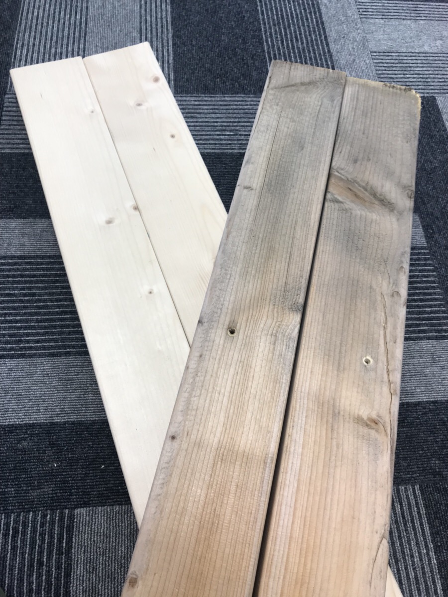 長時間雨風にさらされていると、経年劣化で金具が錆びたり木が日焼けして朽ちていくので、、、
