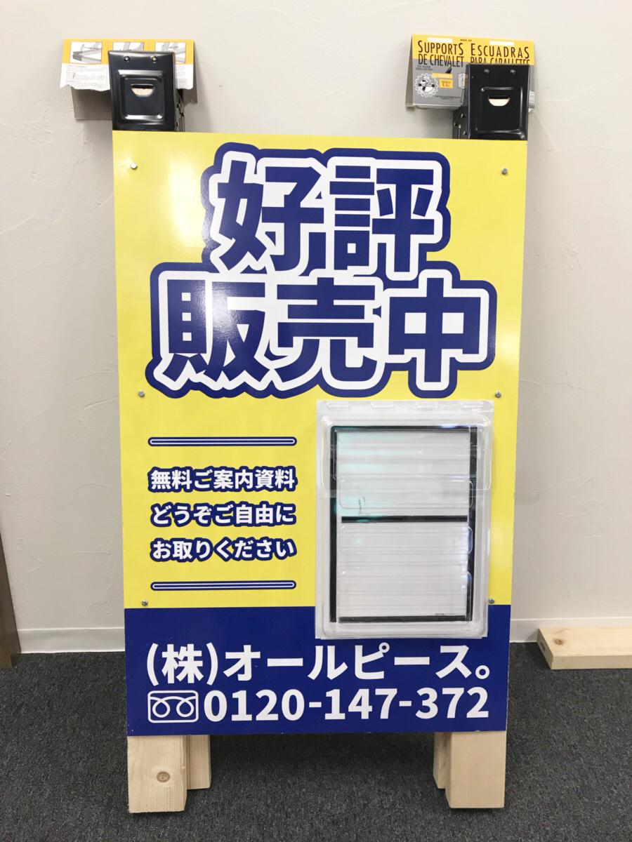 本日は事務所にてオールピース。の現地看板をリペア中⊂(● ̄(エ) ̄●)⊃y゚゚゚