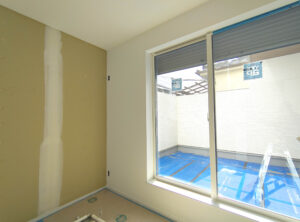 高槻市にて建築中のお客様邸、ただいまクロス(壁紙)工事の真っ最中♪