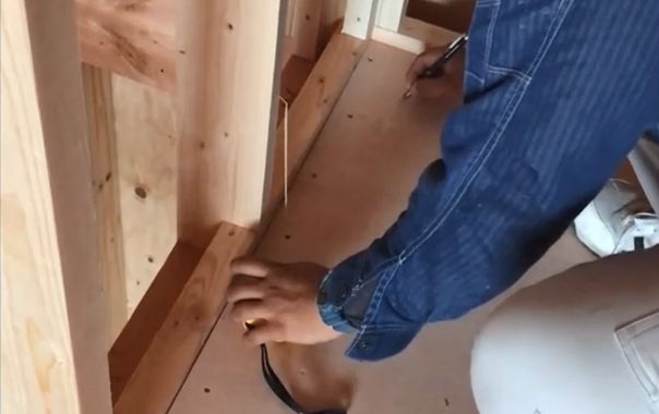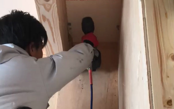 現在建築中の高槻市栄町より☆★ただいま2F洗面台・洗濯パンの水道配管を墨出し準備中です\ヘ(* ̄(エ) ̄)