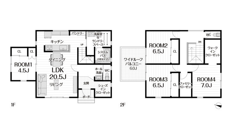 4LDK+広々20.5帖LDK+駐車スペース3台プラン