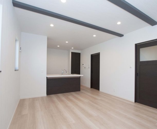 メインのリビングは梁見せ天井で開放的な空間を演出したり、玄関ホールやバルコニーを広く確保する事で全体を通してゆとりのあるお家に仕上がりました。