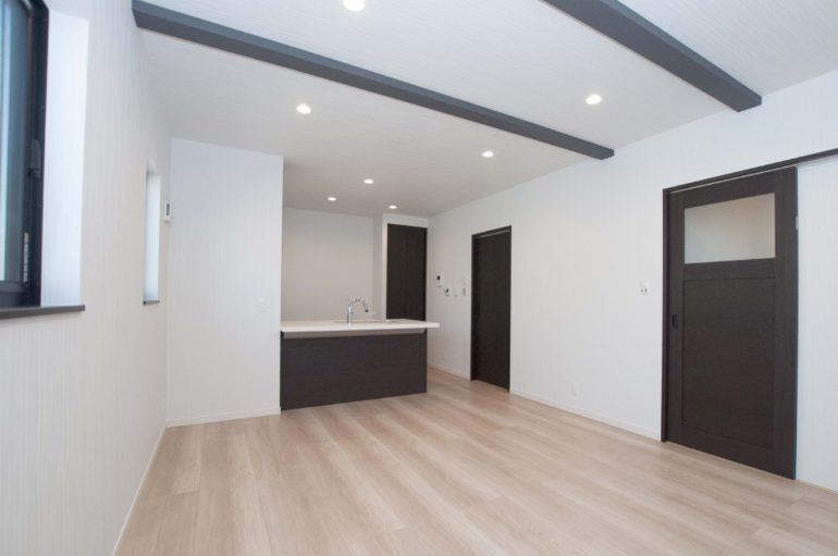 メインのリビングは梁見せ天井で開放的な空間を演出したり、玄関ホールやバルコニーを広く確保する事で全体を通してゆとりのあるお家に仕上がりました。