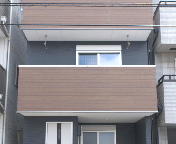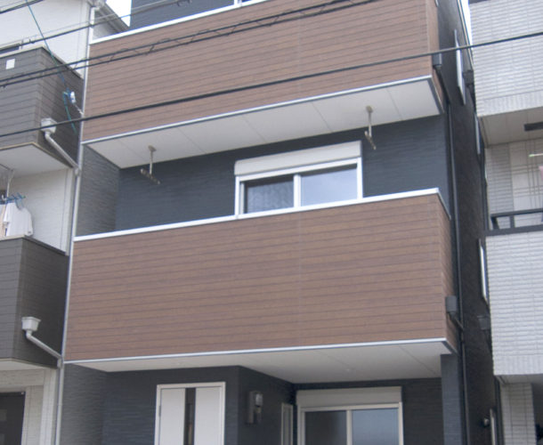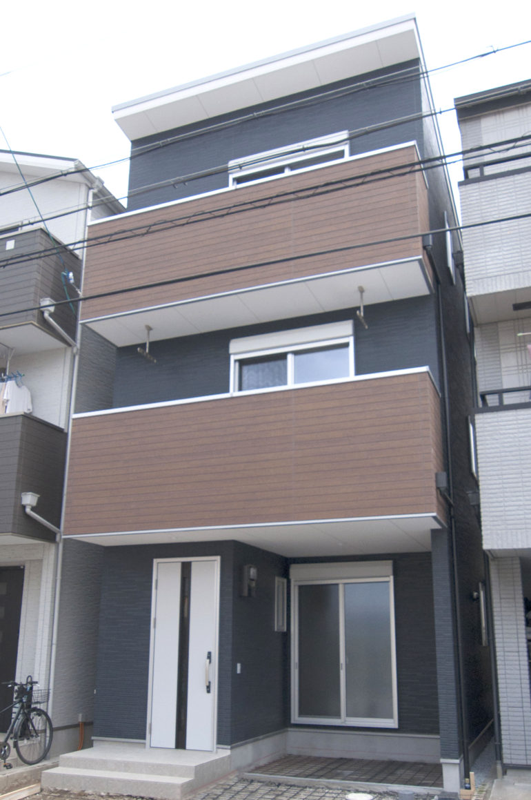 インダストリアルテイストを取り入れたブラック×ヴィンテージウッド調の外観デザイン