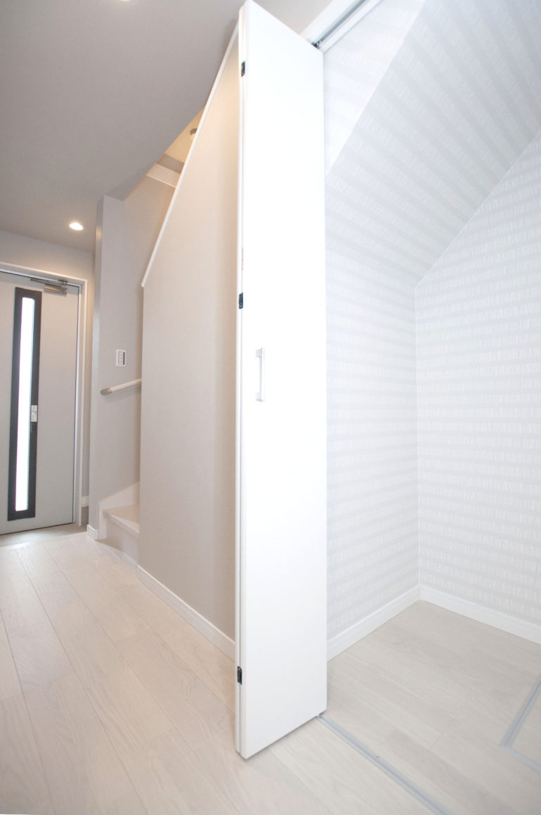 居室の他にも、階段下のデッドスペースを活用した収納庫など、収納力にもこだわったマイホームが完成しました。