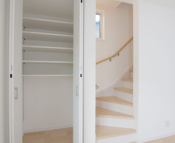 リビングの他にも、階段下のデッドスペースを活用した収納庫や主寝室のウォークインクローゼットなど、これまでのお客様からのご要望も多いプランニングや設備を多く採用していただきました。