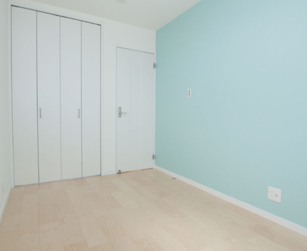 お部屋のイメージに合わせて、清潔感のある白一色の居室やパステルブルー・パステルイエローのアクセントクロスを入れたポップな居室など、彩光明るく様々なテイストの家具にもマッチする居室空間に仕上がりました。