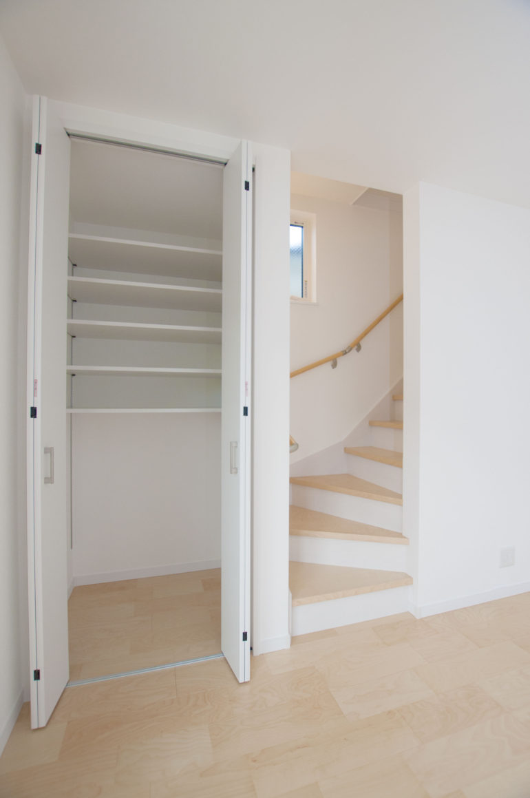 リビングの他にも、階段下のデッドスペースを活用した収納庫や主寝室のウォークインクローゼットなど、これまでのお客様からのご要望も多いプランニングや設備を多く採用していただきました。