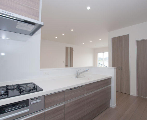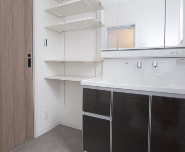 室内の建具や設備の色合いをニュアンスカラーでセレクトしているので、内外ともに統一感のあるモダンなお家に仕上がりました