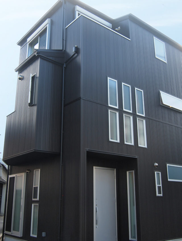 流行の"インダストリアル・デザイン"を取り入れた住まいモダンなガルバリウム鋼板のファサードデザイン、内観は全居室ヴィ