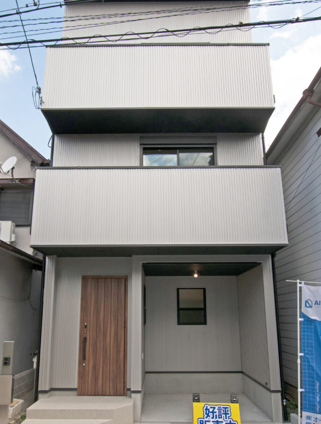 当社オリジナル建売住宅第2弾全居室ボルドーパインの無垢材フローリング+人気のガルバリウム鋼板を使用した外観デザイン+約16帖LDKとアン
